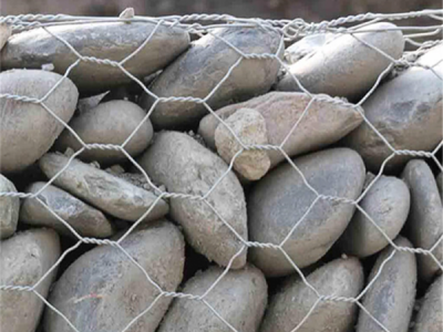 镀高尔凡格宾是由经镀高尔凡(5%-10%铝锌合金+稀土元素)防腐处理的低碳钢丝经机器编织成的六边形双绞合钢丝网,在工厂做成符合工程要求的网箱,通过在构件中填石构成主要用于支挡(冲刷)防护的结构,其具有更优于EN10223~3标准中所述网箱的力学性能。其镀层的粘附力要求:当钢丝绕具有4倍钢丝直径的心轴6周时,用手指摩擦钢丝,其不会剥落或开裂,符合EN10223~3标准。钢丝的抗张强度应在350~550N/mm2,未经拉伸钢丝的延伸率不能低于12%(经过拉伸加工的成品钢丝延伸率不能低于7%)。,该结构具有整体性、柔性、生态性及施工便捷等诸多优点,主要用于堤岸、岸坡坡面防冲刷和河(渠)床底、坡脚等防淘刷防护。