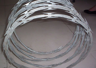 刀片刺网:可分为(蛇腹式) 螺旋式刀片刺绳,直线型刀片刺绳,平板式刀片刺绳,刀片刺绳焊接网等。